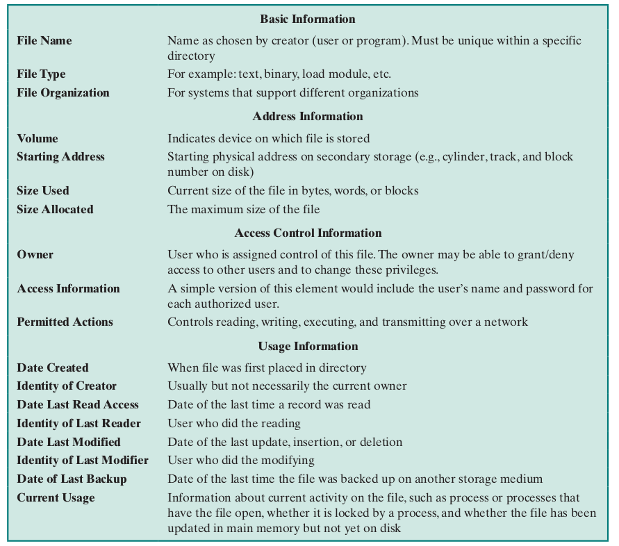 Structure - depending on the file system, a file can have an internal structure that is convenient for particular applications. In addition, files can be organized into hierarhical or more complex structure to reflect the relationships among files